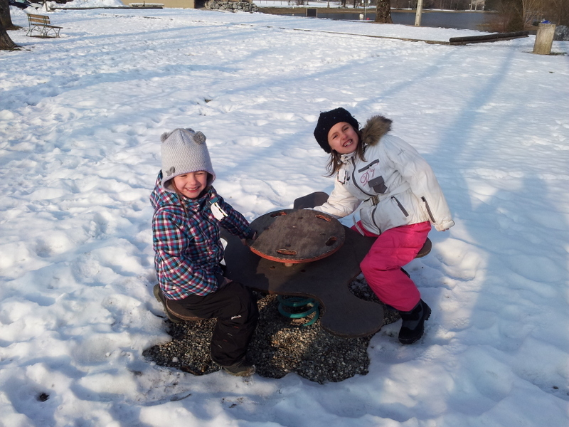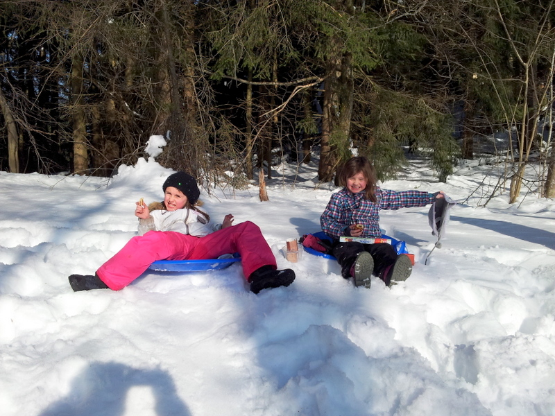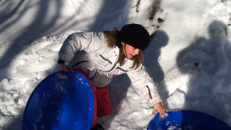 Inès et Naomi font de la luge : Février 2013